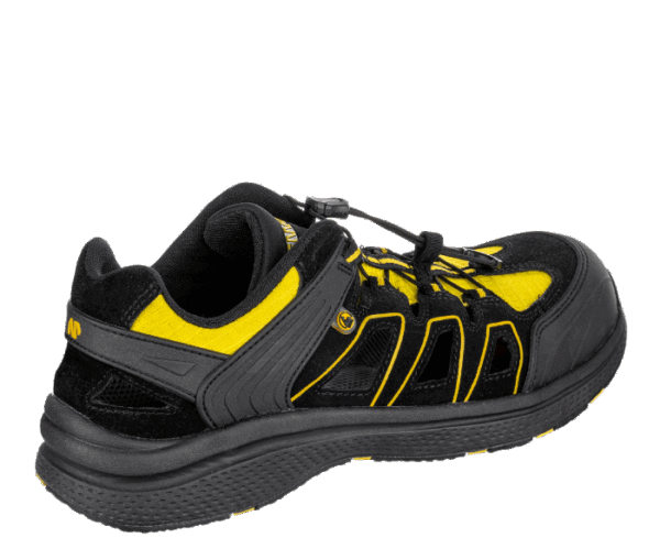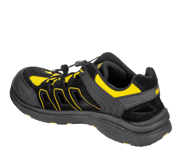 Vzdušný a odolný bezpečnostní sandál s širokým střihem, ideální pro práci ve vnitřních i suchých venkovních prostorách.