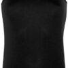 Vypasovaný střih, olemovaný výstřih a průramky tón v tónu, strukturovaná tkanina, regulující vlhkost, rychleschnoucí, tištěný štítek u krku