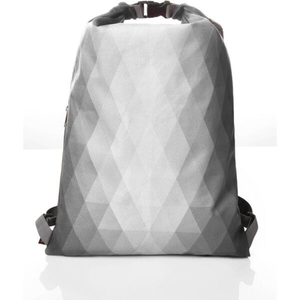 Nastavitelný tkaný ramenní popruh, boční kapsy se zipem, hlavní přihrádka na zip s další možností rozkládání, diamantový dekor, lze nosit oboustranně, objem 12l, rozměry: 35x50cm