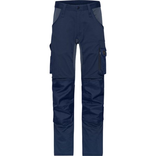 Úzký střih, poutka na opasek, YKK zipy, zasouvací kapsy, různé kapsy na nářadí, polstrované kapsy na kolenách vyztužené tkaninou Cordura®, kapsy vyztužené tkaninou Cordura®, 3-tý šev odolný proti roztržení, robustní a odolná směsová tkanina, vysoký komfort při nošení díky elastickým vsadkám, pratelné na 40°, k dispozici ve 3 délkách, ve webshopu: krátké 02.112S, střední 02.112M/02.112X, dlouhé 02.112L, velikost 62 Art.č. 02.112X