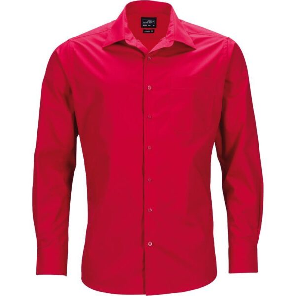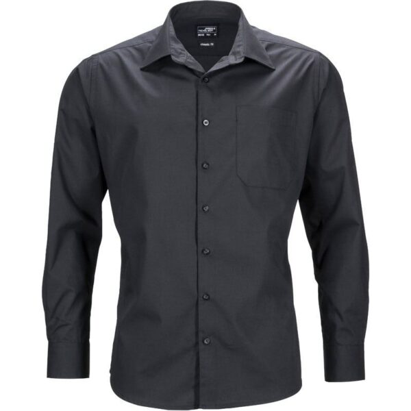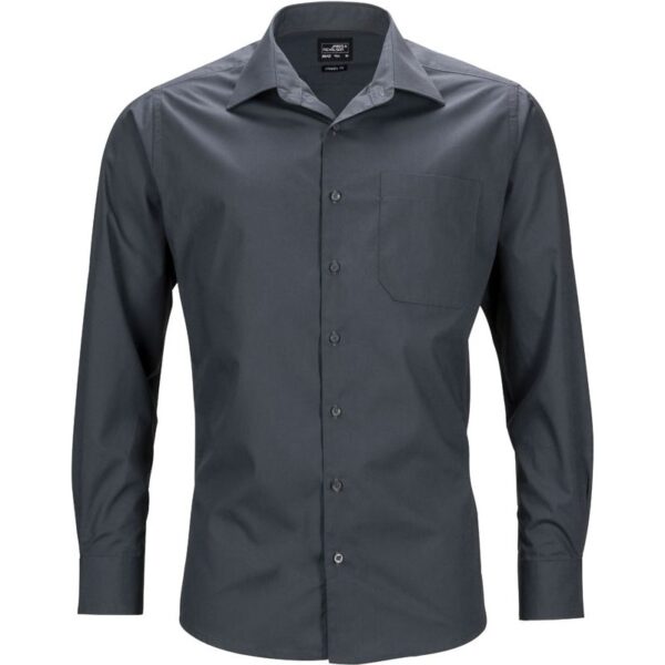 Klasický, lehce vypasovaný střih, klasický límec, manžeta na rukávu, zaoblený lem, náprsní kapsa, záševky na zadním sedle, tkanina pro snadnou údržbu, Easy Care, šetrné praní, snadné žehlení, pratelné na 60°, nelze sušit v sušičce