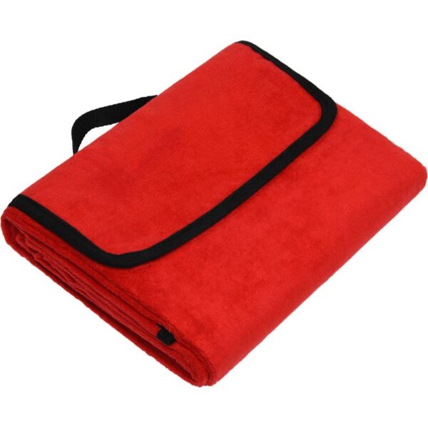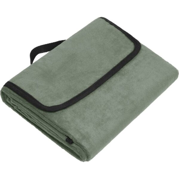 Přenosná pikniková deka z měkkého fleecu, voděodolná spodní strana s PVC povrchem, klopa se suchým zipem (s držákem – lze přenášet), rozměry: 130x150cm, pratelné na 30°, šetrné praní, nelze žehlit, nelze sušit v sušičce