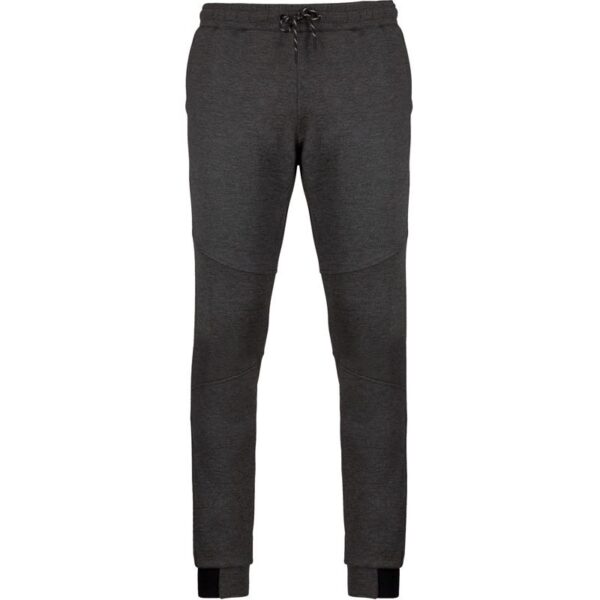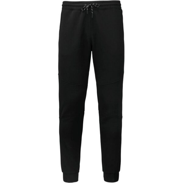 Úzký střih, elastický pas s 2-barevnou šňůrkou, úzké ukončení nohavic s elastickou vložkou v kontrastní barvě, kolenní vsadky, 1 tepelně lepená kapsa na zip vzadu, 2 přední kapsy s žerzejovou podšívkou z 65% polyesteru, 35% bavlny, pratelné na 40°, nelze sušit v sušičce, nelze chemicky čistit