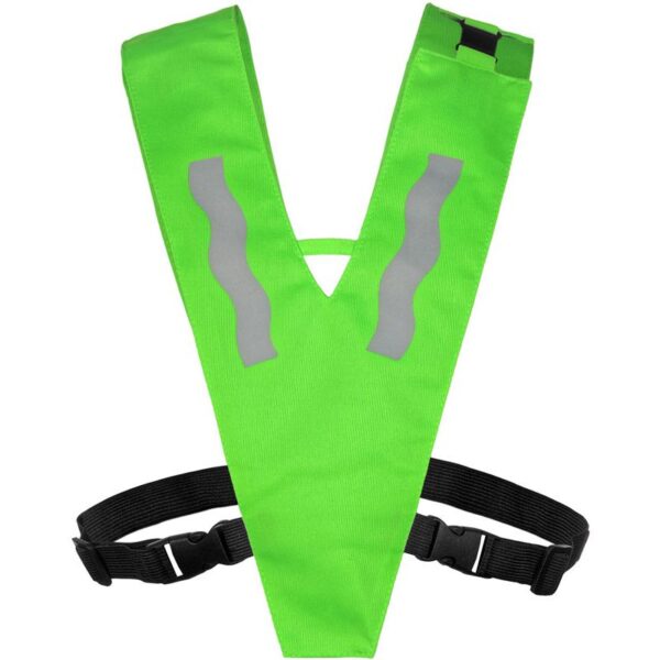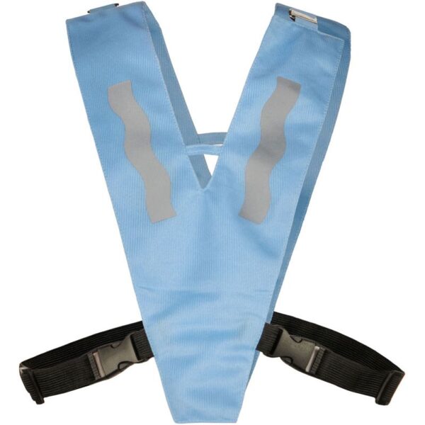 Nastavení velikosti pomocí suchých zipů po stranách, certifikováno podle EN 13356, dva reflexní pruhy široké 5 cm kolem těla