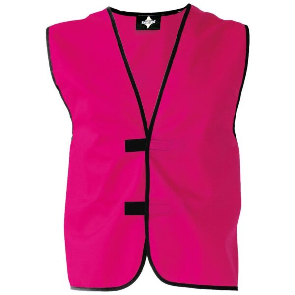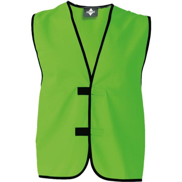 Lemovaná černým polyesterovým lemem, nastavení velikosti pomocí 2 suchých zipů, velká oblast tisku na zádech, yellow a orange certifikovaná podle EN 17353:2020 typ A (denní světlo)
