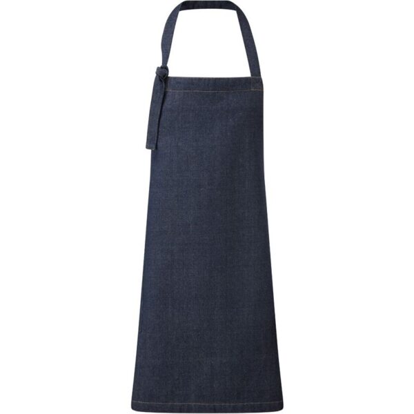 Vyrobeno z recyklovaného džínového materiálu, uzel za krk pro nastavení výšky, 2 boční kapsy, velikost kapsy: 23×17,5cm, švy v kontrastní barvě, látkové popruhy: 90cm dlouhé, délka: 86cm, šířka: 72cm, pratelné na 60°, nelze sušit v sušičce