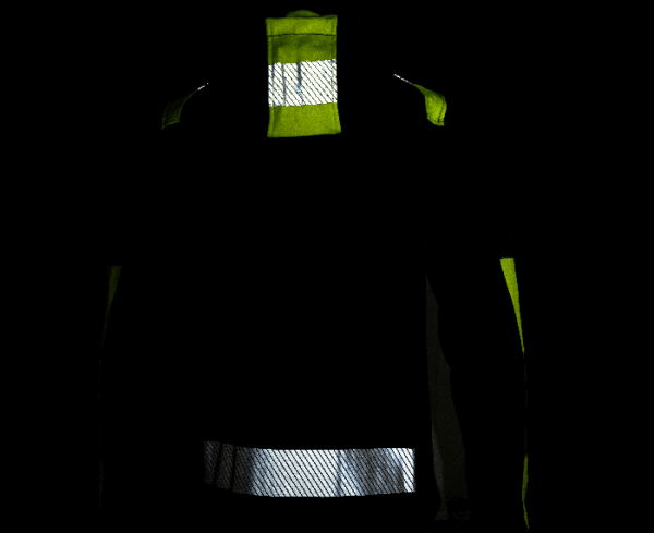 Reflexní pruhy na kapuci, rukávech, zádech a ramenou