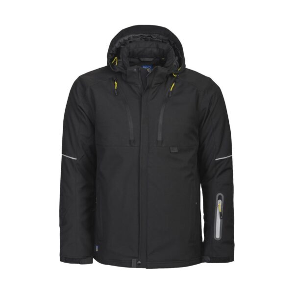 Větruodolná a voděodpudivá (8.000mm vodní sloupec), prodyšná (8.000g/m² za 24h), vnitřní strana stojatého límce z měkkého fleecu, odnímatelná nastavitelná kapuce, větrací zipy v podpaží, šňůrka v pase, nastavitelné manžety se suchým zipem, 1 kapsa na rukávu se zipem vlevo, kapsa na doklady, 2 boční kapsy se zipem, 2 náprsní kapsy na zip, kapsa na mobilní telefon v levé náprsní kapse, vnitřní kapsy na zip, ergonomicky prodloužená zadní část, reflexní detaily, pratelné na 40°, nelze sušit v sušičce