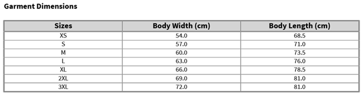 Tabulka velikostí