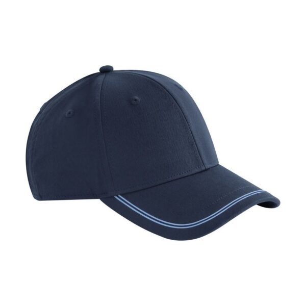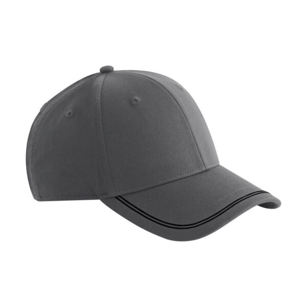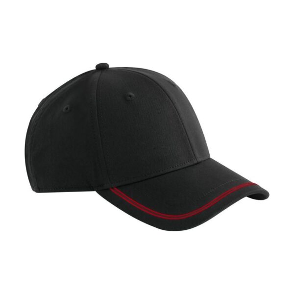 6 panelová kšiltovka „Match Day“, Ohnutý kšilt, 2 silikonový proužek v kontrastní barvě na kšiltu, měkká potní páska, vyztužené přední panely, obšité větrací otvory, látková páska s tri-glide přezkou, regulující vlhkost, štítek Tear Away, pouze čistit houbičkou, nesmí se prát