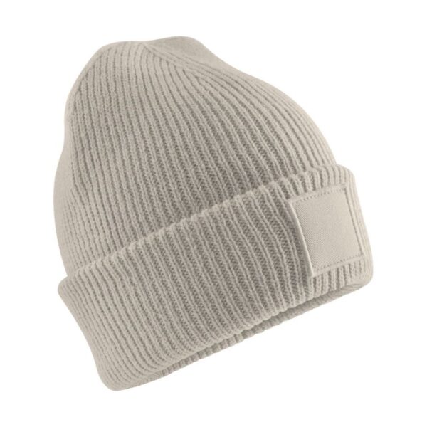 Dětská čepice Patch, 2-vrstvý žebrovaný úplet, široký lem, patch tón v tónu, štítek Tear Away, ruční praní, nelze sušit v sušičce, nelze chemicky čistit