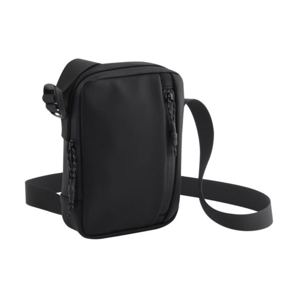 Voděodpudivý materiál, vodotěsné zipy, nastavitelný ramenní popruh, uvnitř síťovaná kapsa, přední kapsa na zip, táhla zipu s reflexními prvky, štítek Tear Away, objem 1,5l, rozměry: 14x20x6cm, pouze čistit houbičkou, nesmí se prát