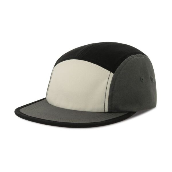 5 panelová kšiltovka, Vnitřní kšilt z recyklovaného plastu, flexibilně nastavitelný kšilt, 4 ozdobných švů na kšiltu, nevyztužený přední panel, obšité větrací otvory, plastové zapínání, předepraný měkký materiál, štítek Tear Away, pratelné na 30°, ruční praní, nelze žehlit, nelze sušit v sušičce, nelze chemicky čistit