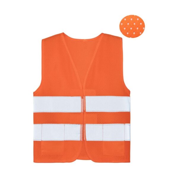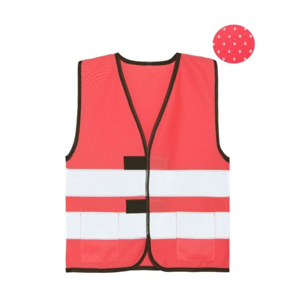 2 našité kapsy, suchý zip, lehký letní chladivý materiál, certifikováno podle EN 17353:2020 typ AB3 (viditelnost za denního světla a tmy), dva reflexní pruhy široké 5 cm kolem těla, XXS 3-4 roky, XS 5-7 let, S 8-10 let