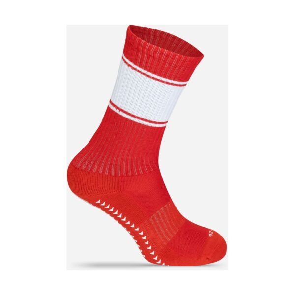 Prodyšný materiál, silikonový protiskluzový rip materiál na chodidle, speciální technologie pro optimalizaci stavby chodidla, Oblast nohou z organické bavlny, žebrovaná holeň z recyklovaného polyesteru, polyamidu a elastanu, pruhy v kontrastní barvě, ideální pro sublimační tisk, vyrobeno v Evropě, kartonová vložka v každé položce pro snadný potisk, pratelné na 30°, lze sušit v sušičce, nelze žehlit