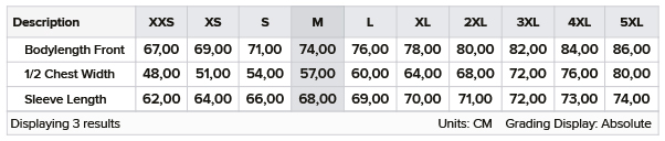 Tabulka velikostí