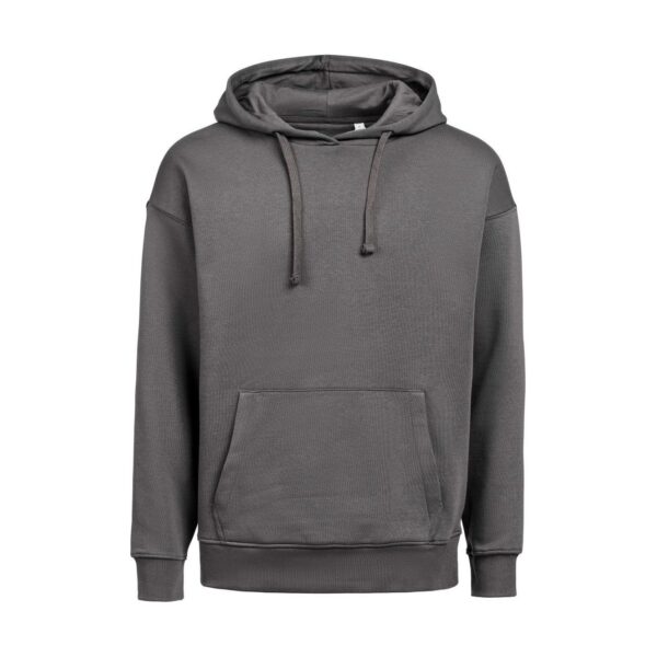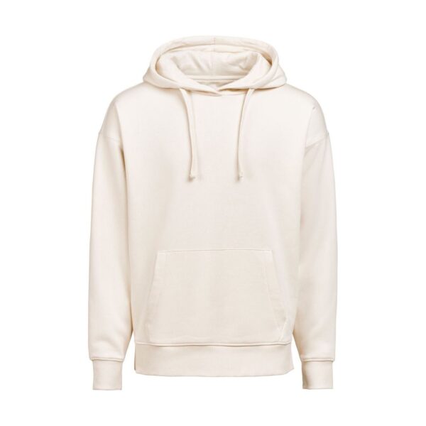 Volný střih, podšitá kapuce s plochou šňůrkou tón v tónu, krční lemovka se vzorem rybí kosti tón v tónu, půlměsícová podsádka na krku, 2×1 žebrované manžety a lem, klokaní kapsa, měkké na omak, certifikovaná veganská výroba bez živočišných přísad, výpočet LCA (Life Cycle Assessment) pro vyhodnocení dopadu na životní prostředí během celého životního cyklu, neutrální velikostní štítek, pratelné na 60°, lze sušit v sušičce při nízké teplotě