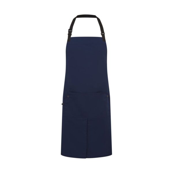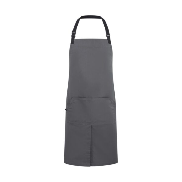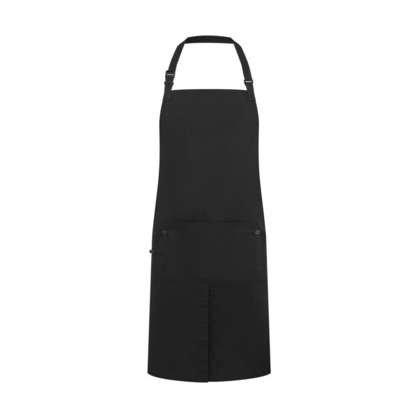 Zástěra s laclem „Utlity 2.0“, Velká přední kapsa, středový rozparek pro větší volnost pohybu, látkové popruhy: 90cm dlouhé, nastavitelné zapínání na klip s páskou, robustní a odolná směsová tkanina, rozměry: 86x72cm, pratelné na 60°, lze sušit v sušičce při nízké teplotě