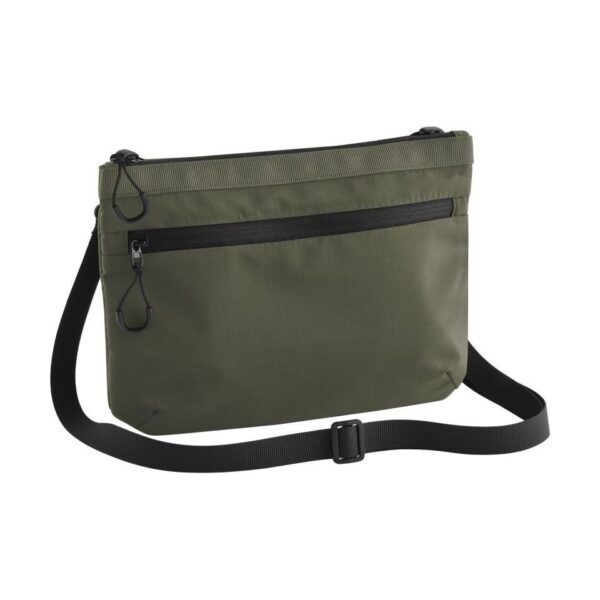 Odnímatelný nastavitelný ramenní popruh, uvnitř síťovaná kapsa, hlavní přihrádka na zip, přední přihrádka na zip, úchyt na klíče, štítek Tear Away, objem 1l, rozměry: 27x19x3,5cm, pouze čistit houbičkou, nesmí se prát