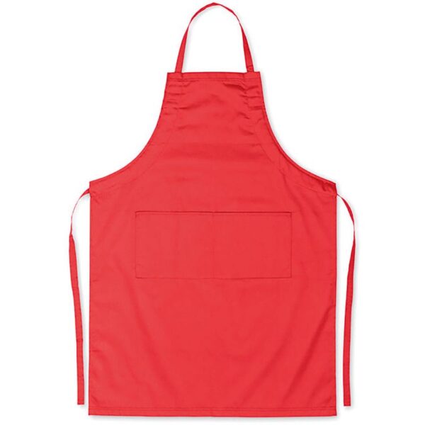 Zástěra s laclem, Velká přední kapsa se dvěma přihrádkami, štítek TearAway, rozměry: 98x70cm, pratelné na 60°, Easy Care, nelze sušit v sušičce