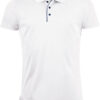 Léga se 3 knoflíky s lemováním v kontrastní barvě, krční lemovka, boční rozparky v kontrastní barvě, vhodné pro sublimační tisk, absorbující pot, rychleschnoucí, pratelné na 60°, nelze sušit v sušičce