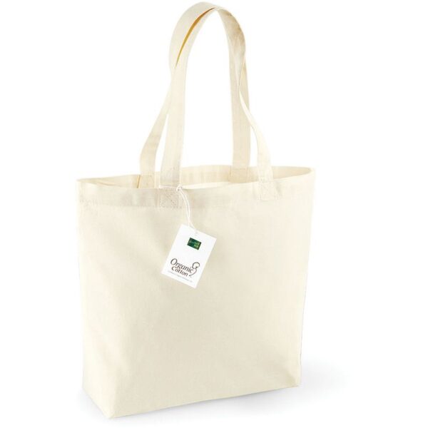 Bio bavlněná taška, 2 dlouhé rukojeti, délka rukojeti: 58cm, objem 16l, rozměry: 32x35x12cm, pouze čistit houbičkou, nesmí se prát